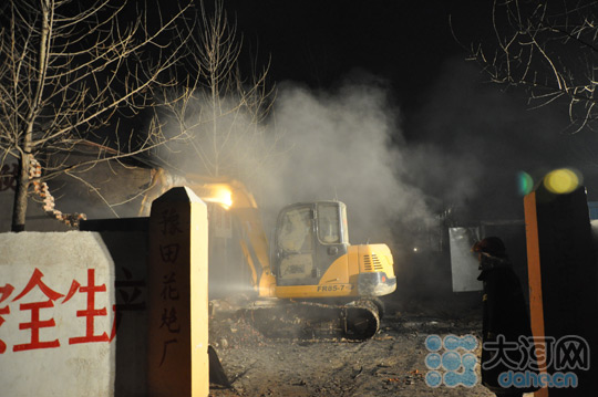 1月19日下午4时50分左右,位于漯河市郾城区李集镇豫田花炮厂发生爆炸,鞭炮厂面积有十几亩地之广,多排房屋被炸。本网记者于午夜时分赶到现场,仍有零星爆竹炸响。凌晨2时左右,大部分消防人员开始撤离,救援基本结束。据悉,爆炸发生后,史济春副省长连夜赶赴现场指挥救援工作。有消息称,该厂相关负责人已被控制。
