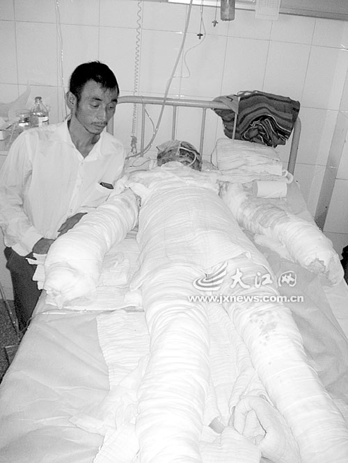 记者在湖南浏阳市人民医院重症监护室看到张运明和邹业文,他们全身被白色的纱布包裹着,吴昌还在手术中。目前3男孩均未脱离生命危险。