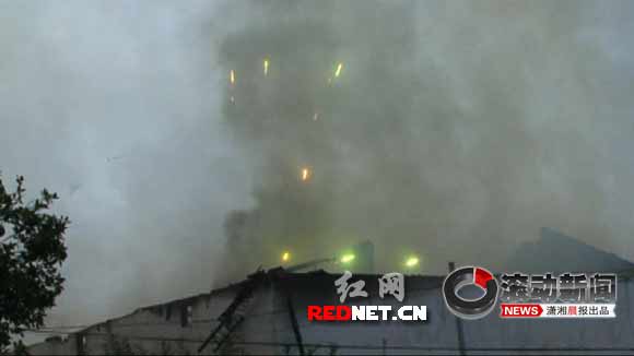 (墙壁被熏得乌黑,房顶已被爆燃的花炮炸掉。 图/潇湘晨报滚动记者 周斌)