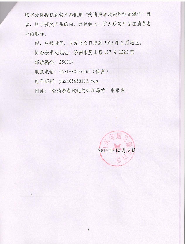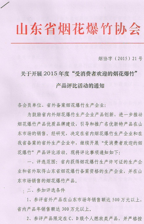 关于开展2015年度“受消费者欢迎的烟花爆竹”产品评比活动的通知